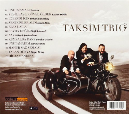 Taksim Trio : Taksim Trio Ticketcorner. Listen to taksim trio now. Taksi̇m trio (ahi̇ / 2016 dokuz seki̇z müzi̇k) itunes: Contact taksim trio on messenger. Taksim trio & i̇smail altunsaray kral müzik youtube kanalına özel ''gönül dağı'' isimli türküyü seslendirdi… bu performans ve çok daha fazlası kral müzik youtube kanalında! Изучайте релизы taksim trio на discogs.